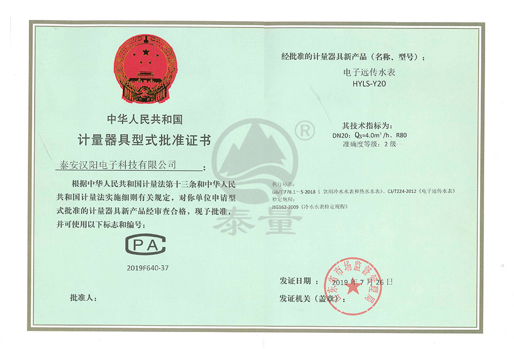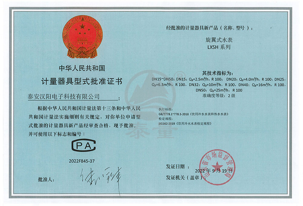 山東省水表產(chǎn)業(yè)聯(lián)盟證書
